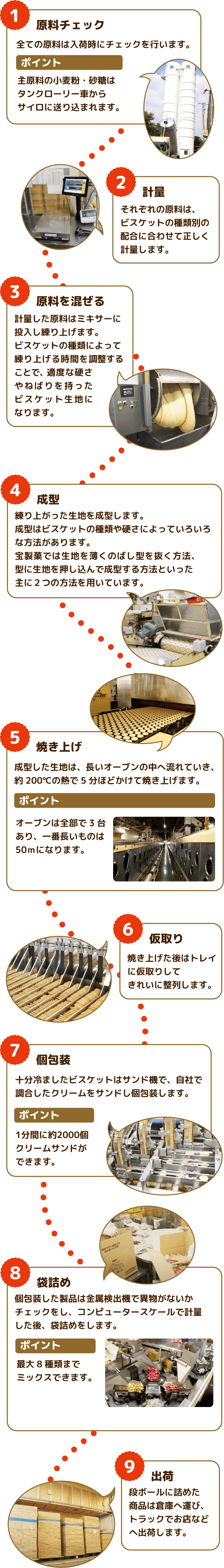 宝製菓ではさまざまな種類のビスケットを作っています。