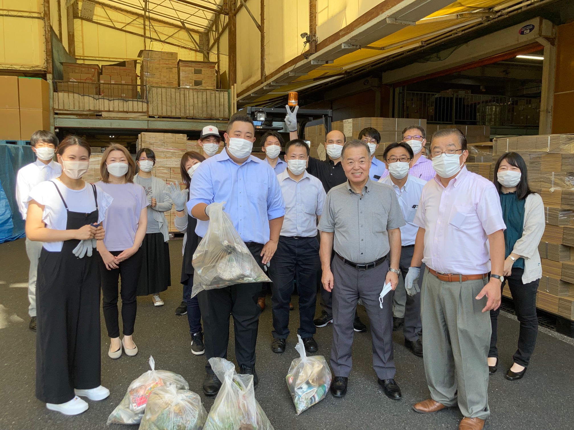 当日の参加者は約30名、社屋周辺、国道1号線通勤路の道路を清掃しました。