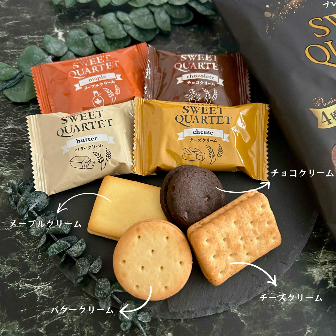選び抜かれた4種類のビスケットにバラエティに富んだ4種類のクリームをサンドしました。