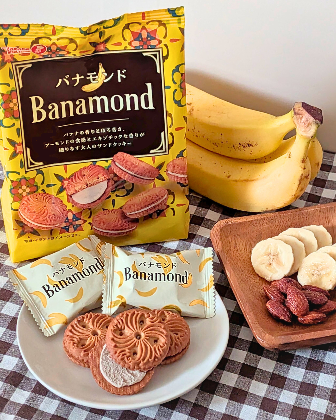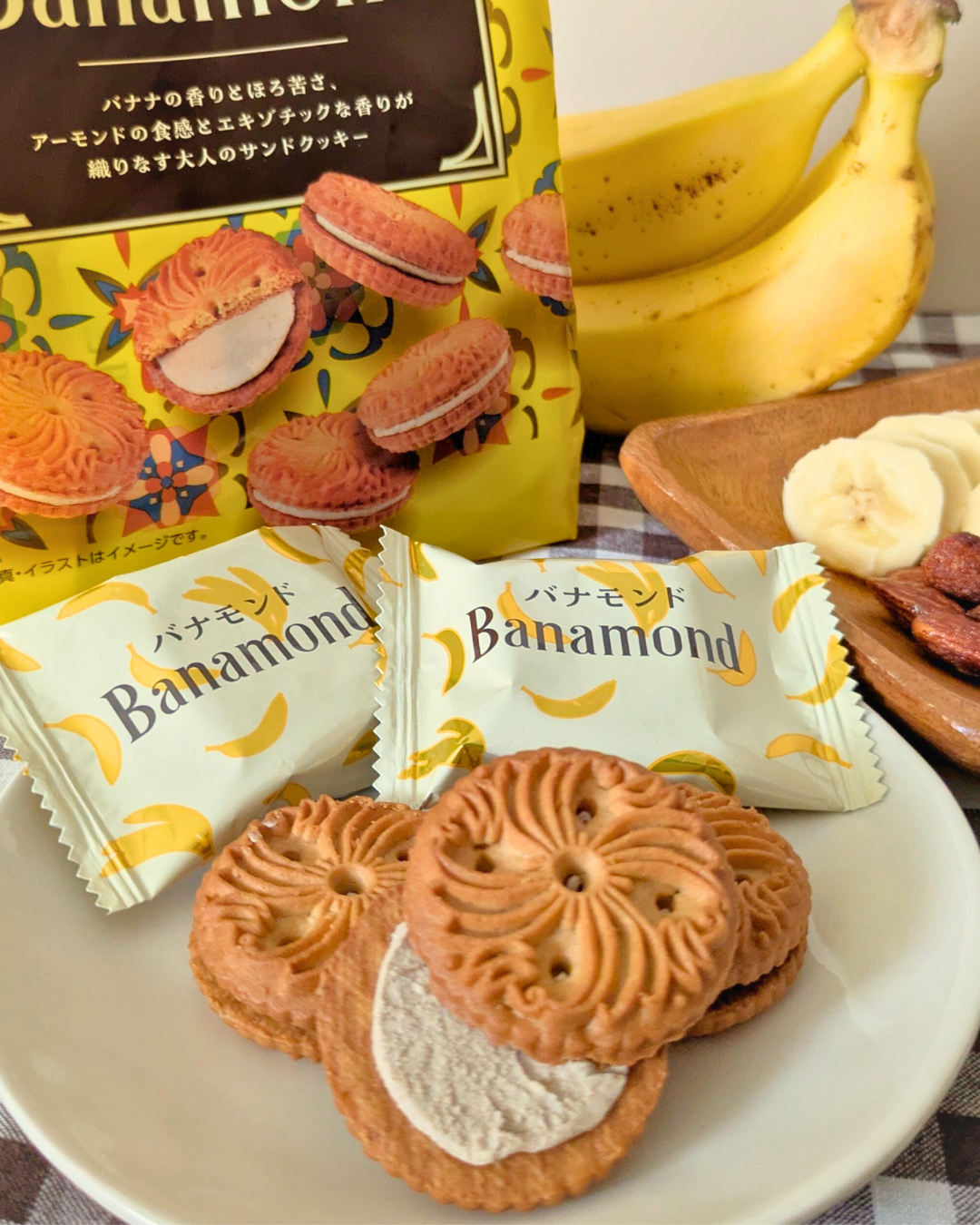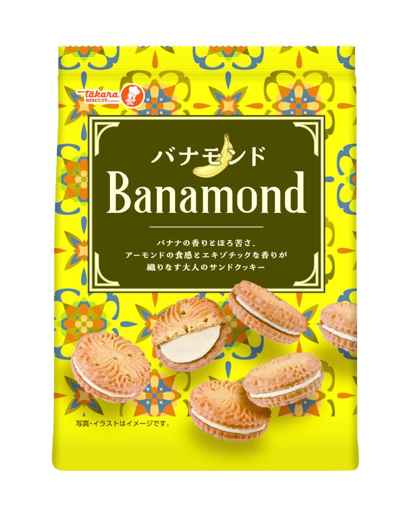 バナナの香りとほろ苦さ、アーモンドの食感とエキゾチックな香りが織りなす大人のサンドクッキーです。