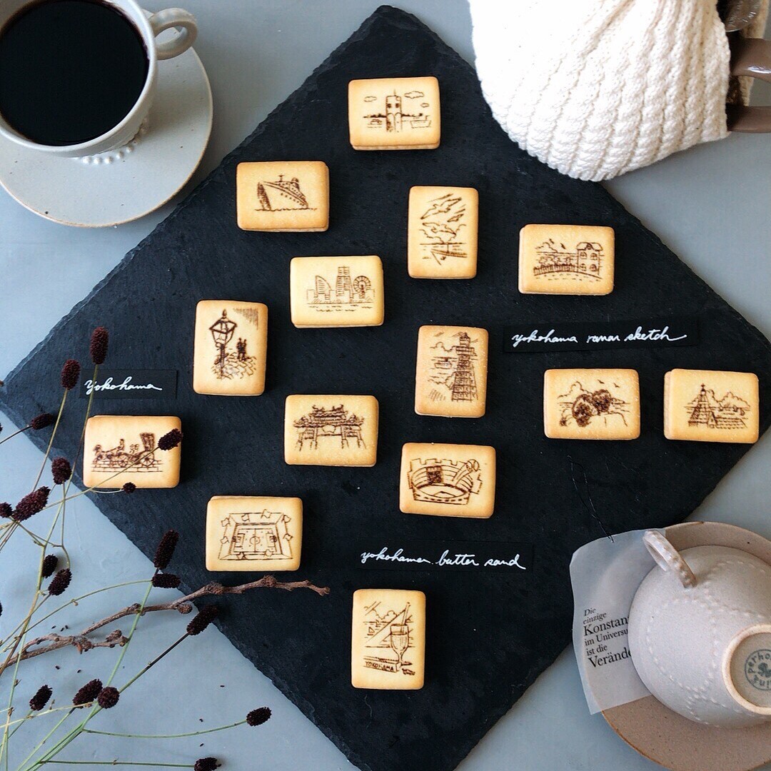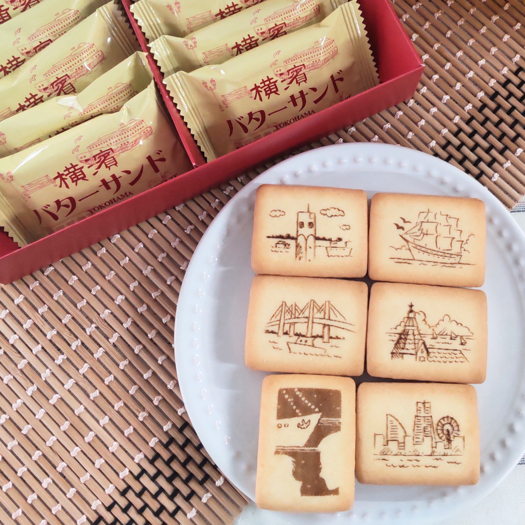 横濱の情景を映し出したサックリ食感のビスケットでバタークリームをサンドしました。バターの風味をビスケットにふりかけた塩が引き立てます。