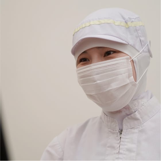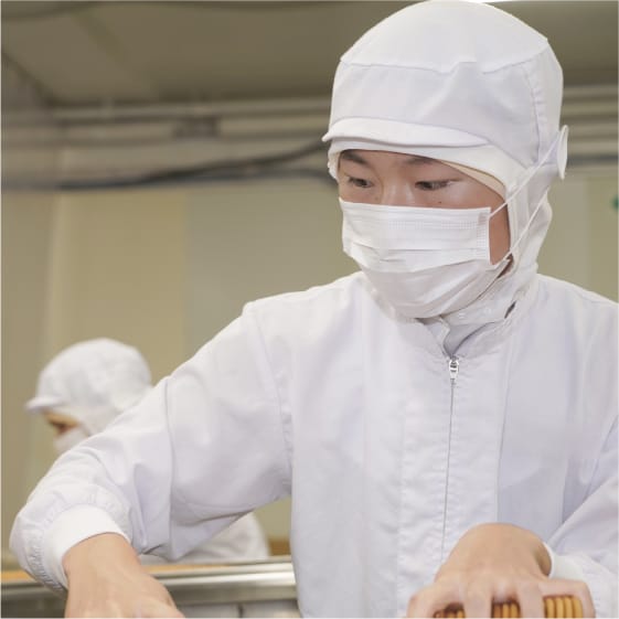 私たちの部署では、実際に原料の計量からビスケットの生地の製造、包装までを行っています。その中でも私は風味付けされたクリームをビスケットでサンドする仕事を担当しています。