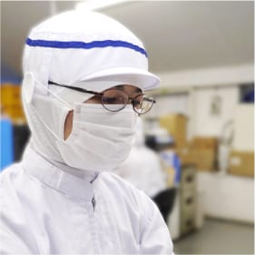 品質管理課で生産時のチェック表の確認や原料が納品された際の確認を行っています。また、新しく入社してきた従業員の方に向けて、食品安全や衛生管理について工場内でのルールなどを教えています。