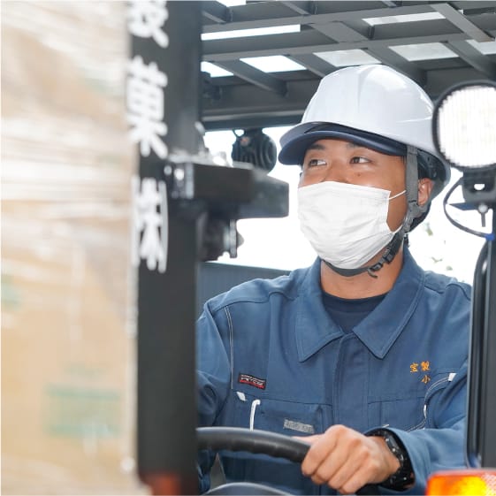 ロジスティック課で物流業務全般に携わっています。具体的には、日付管理も含んだ在庫管理やフォークリフトを使用して詰込や出荷業務を行っています。